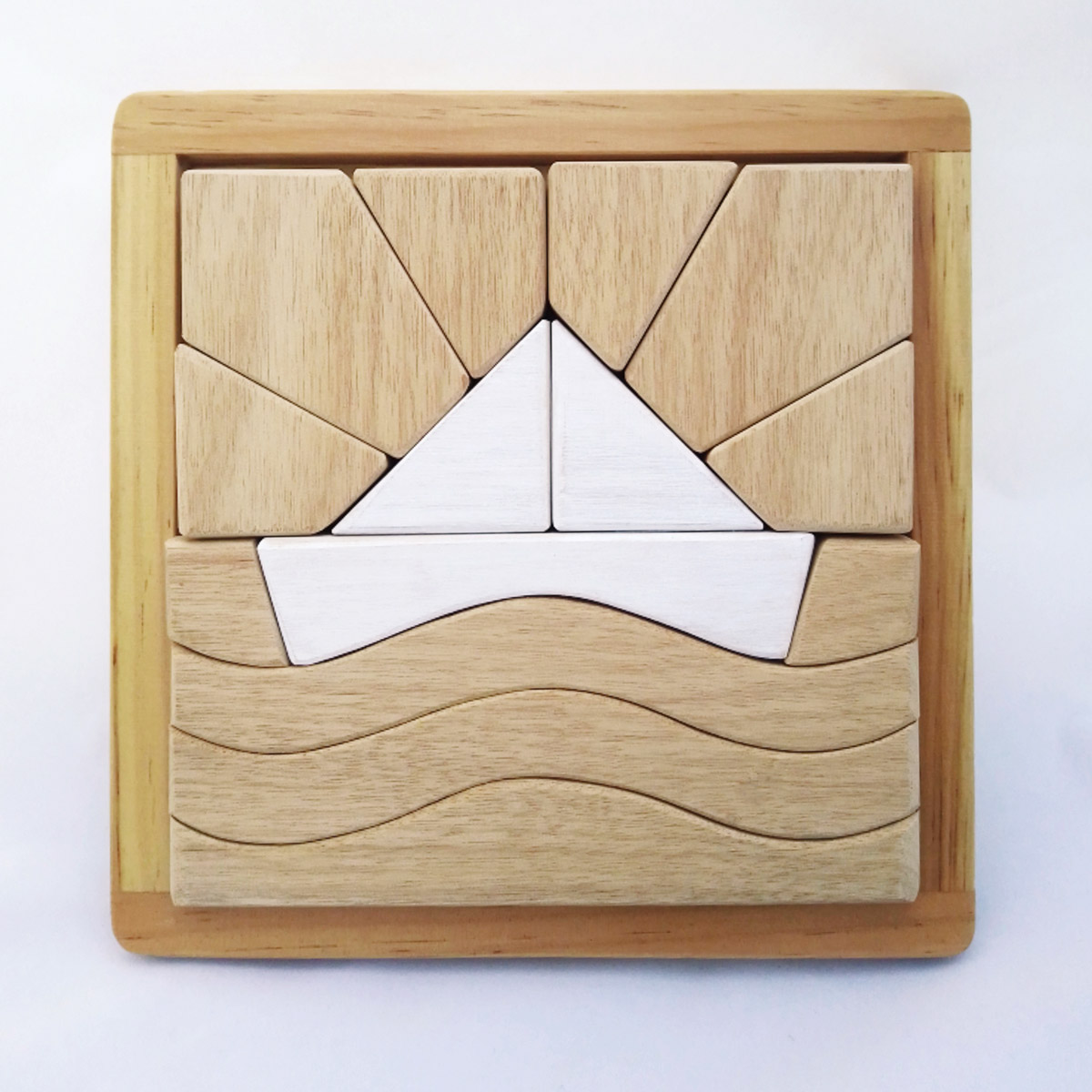 Hecho artesanalmente en madera reciclada; cada rompecabezas es elaborado uno a la vez en todas sus partes.