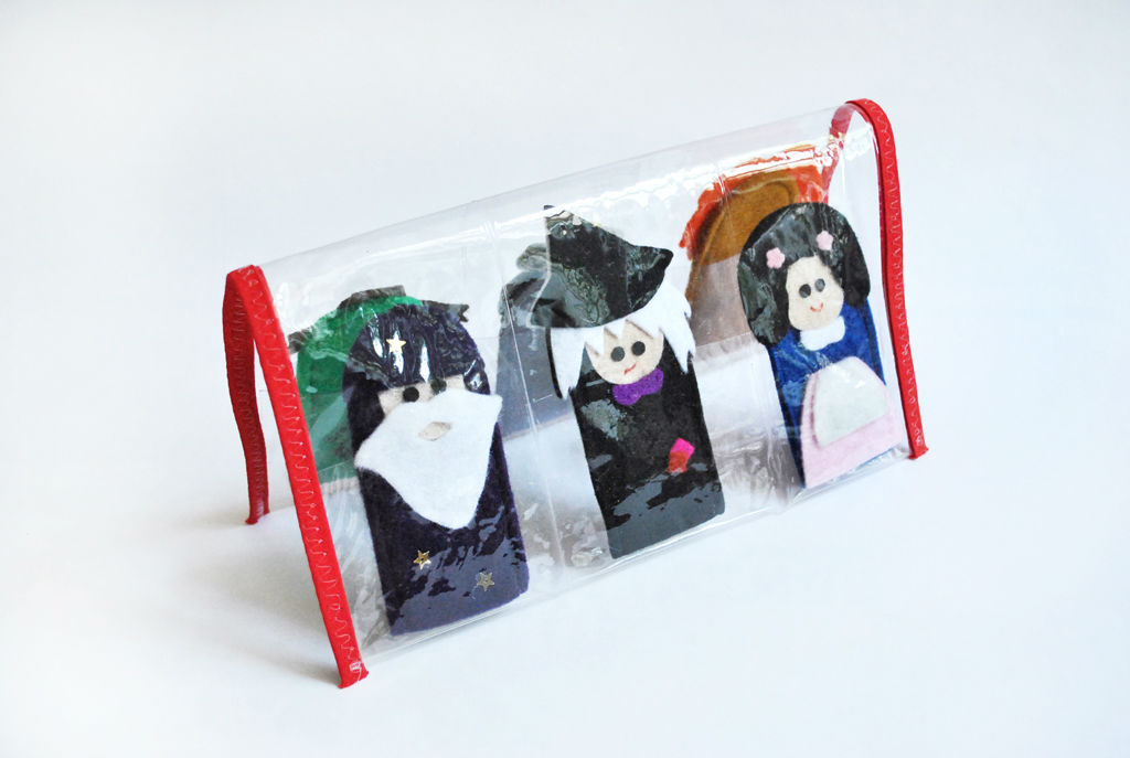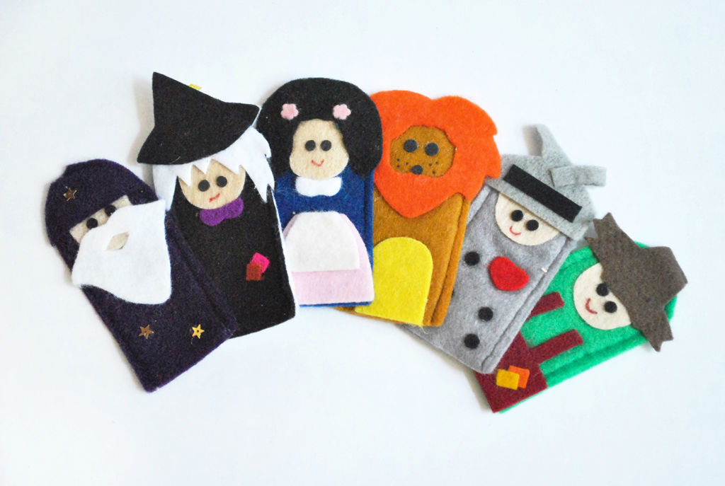 El set de Títeres de dedo de Mago de Oz consta de 6 títeres y una cartera para guardarlos.